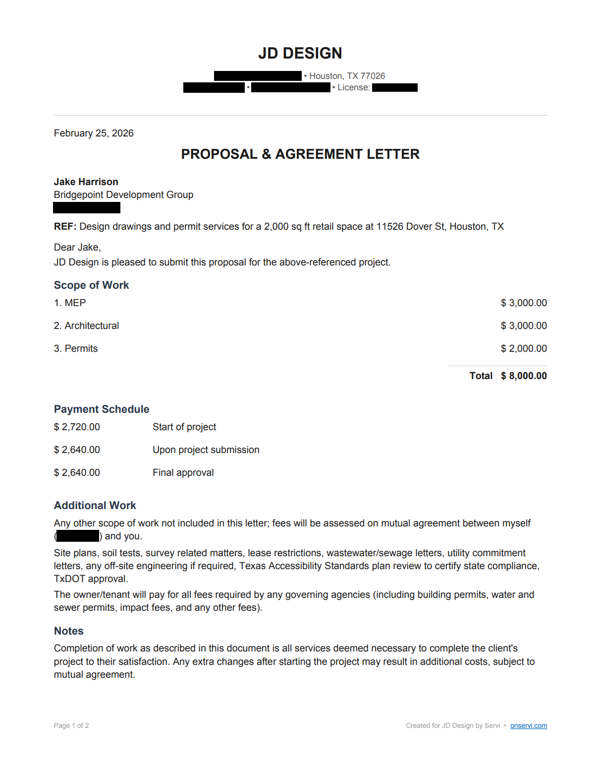 Servi generates professional documents for the job in seconds.